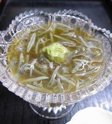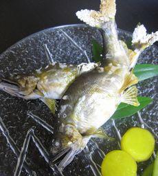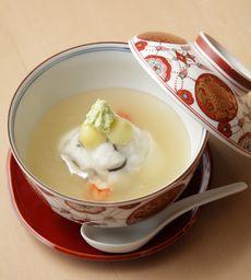 和歌山県の田村の三宝柑を器に使い、自家製の煮穴子・海老・銀杏・しいたけを盛り込み、じっくりと時間をかけ蒸し上げると、各素材の香りと三宝柑の香りが口の中に広がります。 |